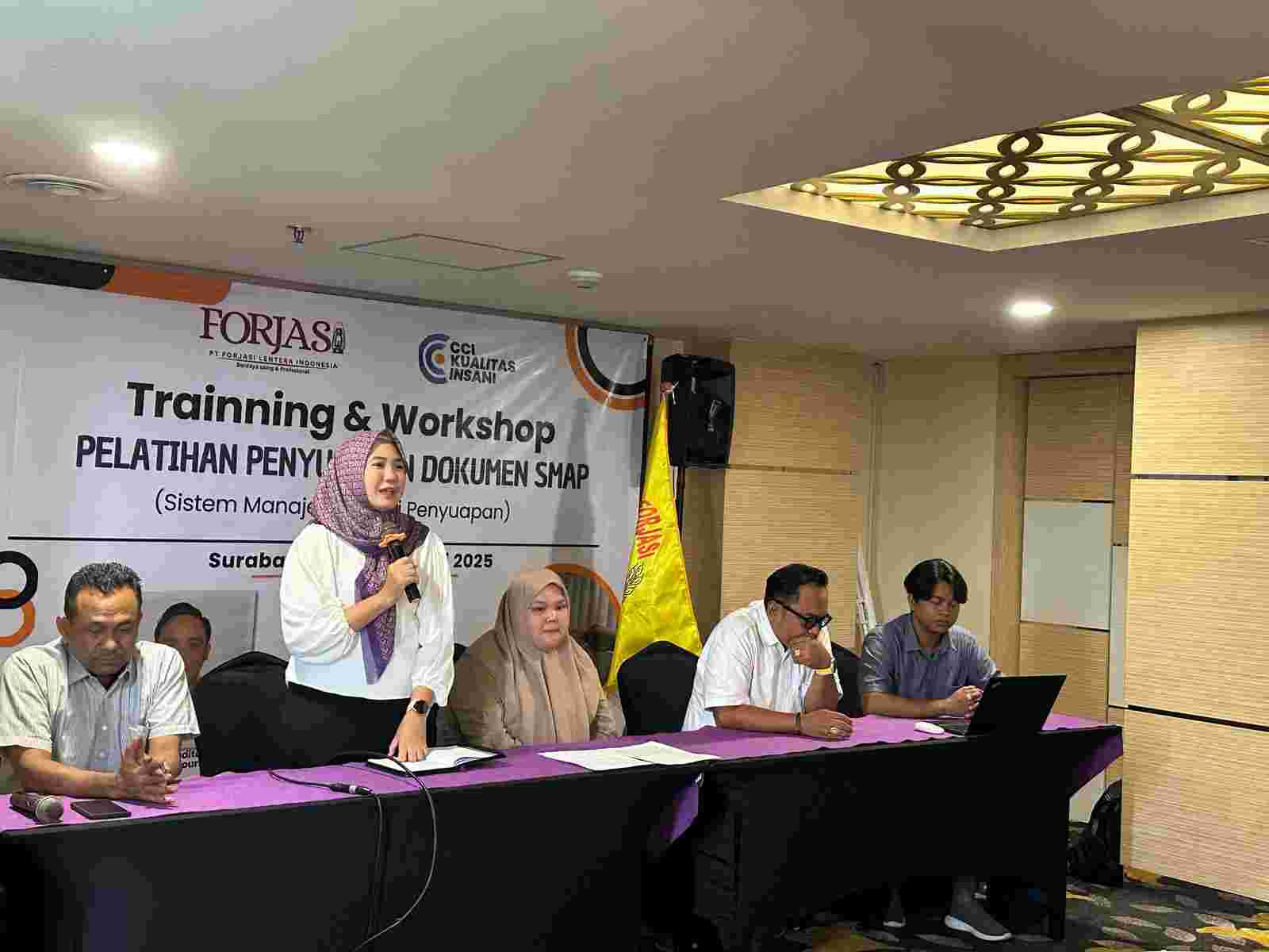 Surabaya, Anahtindik.com – PT FORJASI LENTERA INDONESIA bekerja sama dengan CCI Kualitas Insani mengadakan pelatihan Training & Workshop Penyusunan Dokumen Sistem Manajemen Anti Penyuapan (SMAP) sebagai upaya membantu badan usaha dalam memenuhi regulasi terbaru terkait ISO 37001:2016.