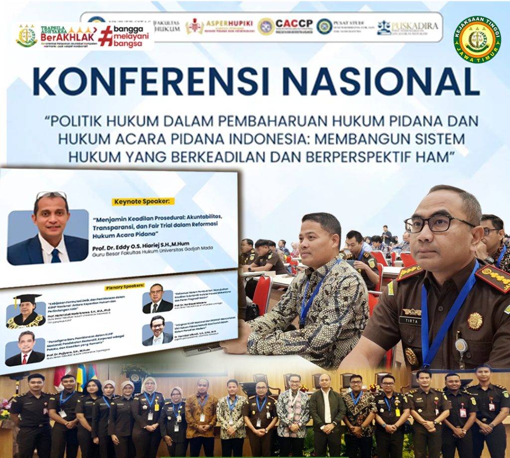 Surabaya – Bertempat di Gedung A.G. Pringgodigdo, Fakultas Hukum Universitas Airlangga, Surabaya, pada Selasa, 15 Juli 2025, telah diselenggarakan Konferensi Nasional bertajuk “Politik Hukum dalam Pembaruan Hukum Pidana dan Hukum Acara Pidana Indonesia: Membangun Sistem Hukum yang Berkeadilan dan Berperspektif HAM”. Kegiatan ini menghadirkan para akademisi, pakar hukum, peneliti lintas institusi, serta aparat penegak hukum sebagai bentuk sinergi akademik dan praktik dalam merumuskan arah reformasi hukum pidana nasional.