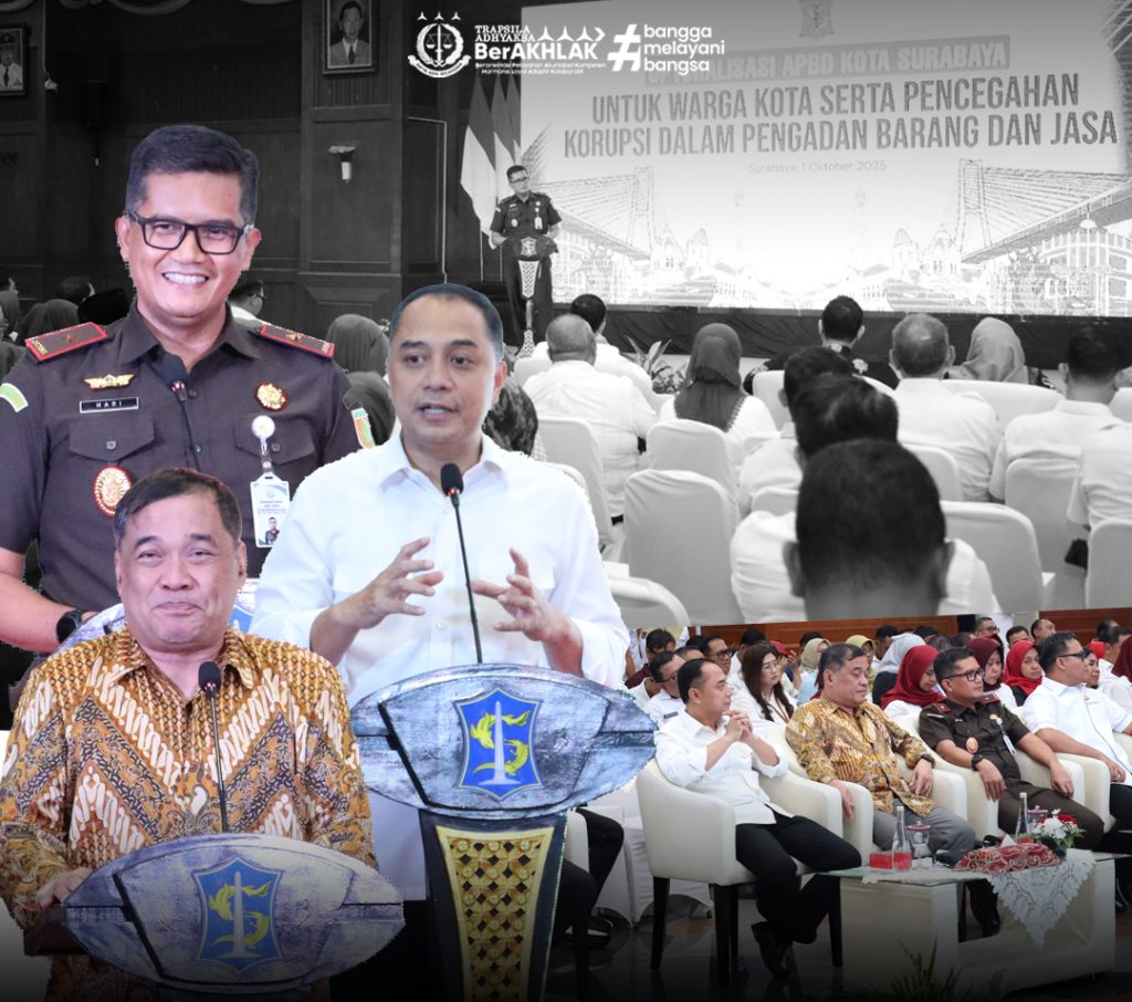 Surabaya – Kepala Kejaksaan Tinggi Jawa Timur yang diwakili oleh Wakil Kepala Kejaksaan Tinggi Jawa Timur, Dr. Hari Wibowo, S.H., M.H., hadir sebagai keynote speaker dalam kegiatan Optimalisasi APBD Kota Surabaya untuk Warga Kota Surabaya serta Pencegahan Korupsi dalam Pengadaan Barang dan Jasa di Graha Sawunggaling Surabaya, Rabu (1/10/2025).