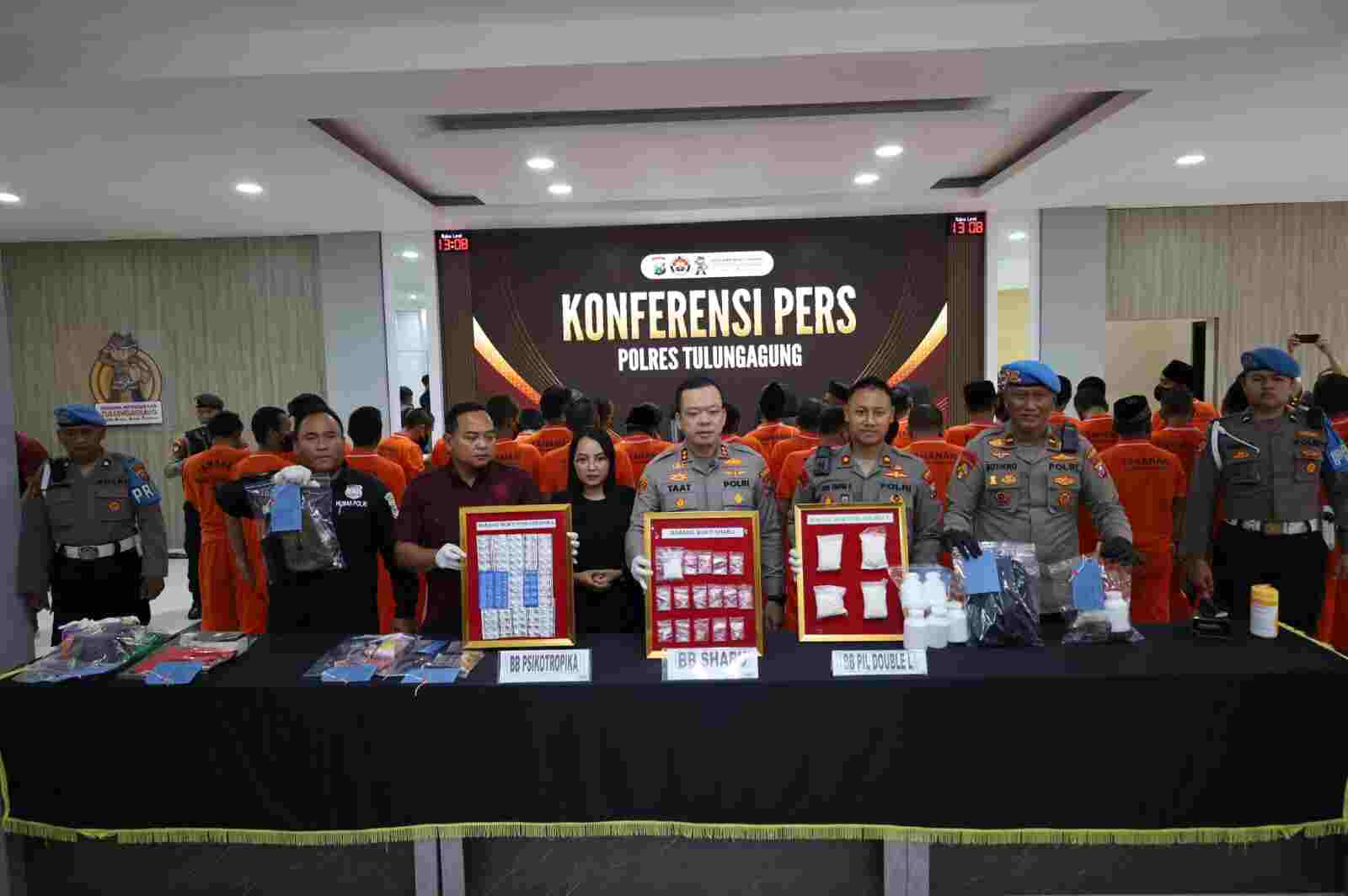 Dalam konferensi pers di Mapolres Tulungagung, Rabu (5/11/2025), Kapolres Tulungagung AKBP Taat Resdi menyebut para tersangka terdiri dari 39 pria dan 1 wanita. Dari tangan para pelaku, polisi mengamankan berbagai barang bukti narkoba dan perlengkapan pendukung transaksi.