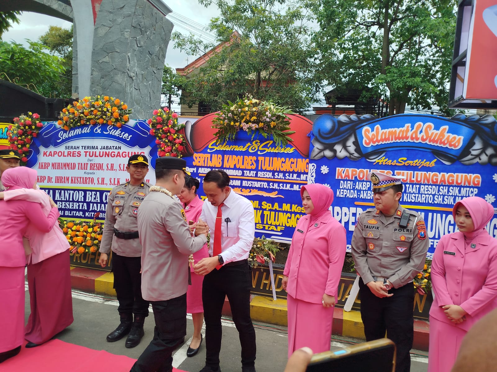 Dalam kesempatan tersebut, Jabatan Kapolres Tulungagung resmi diserahterimakan dari AKBP Muhammad Taat Resdi, S.H., S.I.K., MTCP kepada AKBP Dr. Ihram Kustarto, S.H., S.I.K., M.Si., M.H. sebagai pimpinan yang baru.