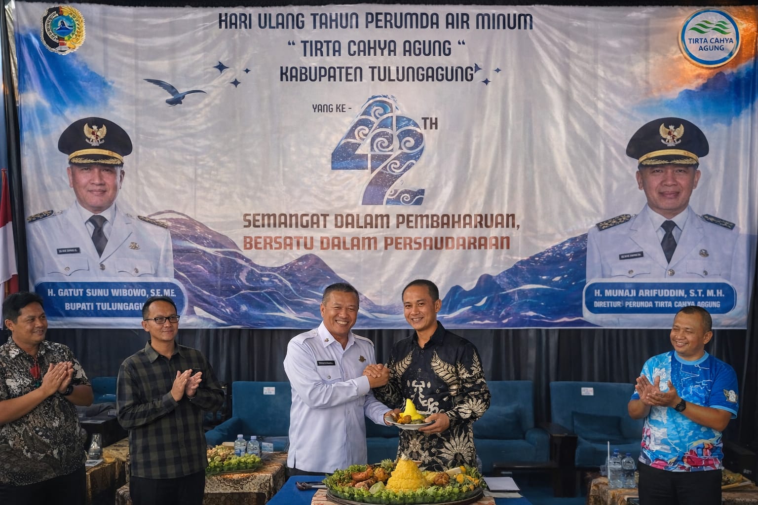 “Atas nama Pemerintah Kabupaten Tulungagung, saya mengucapkan selamat ulang tahun ke-42. Perumda memiliki peran penting dalam menyediakan layanan air bersih yang layak, terjangkau, dan berkelanjutan bagi masyarakat,” ujar Gatut Sunu.