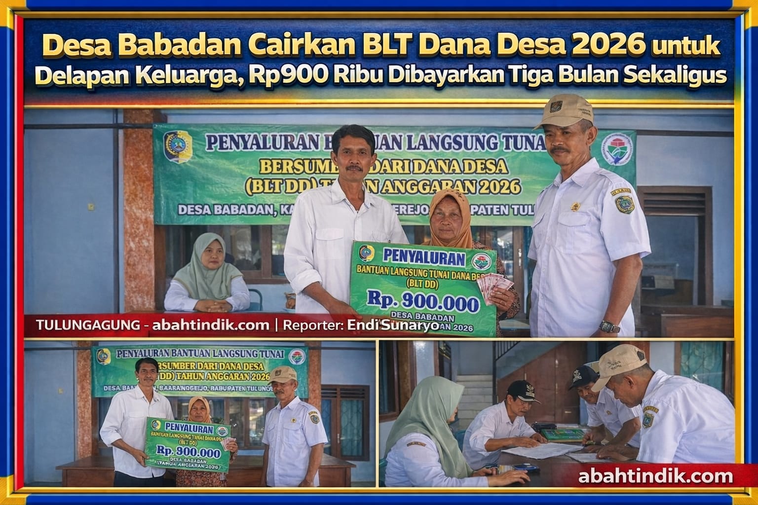 TULUNGAGUNG – abahtindik.com | Pemerintah Desa Babadan, Kecamatan Karangrejo, Kabupaten Tulungagung menyalurkan Bantuan Langsung Tunai Dana Desa Tahun Anggaran 2026 kepada delapan keluarga penerima manfaat, Selasa 25 Februari 2026.
