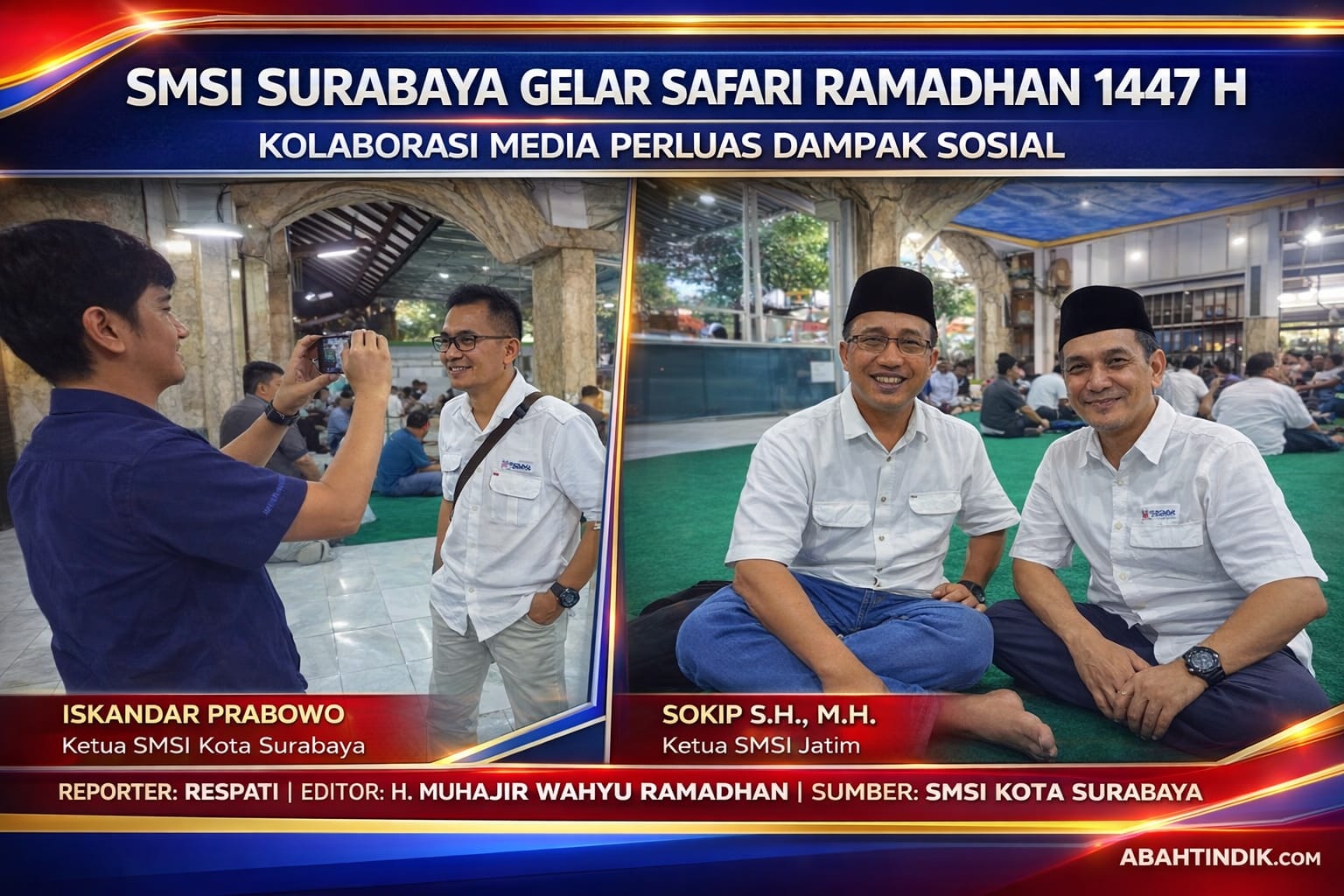 Ketua SMSI Kota Surabaya Iskandar Prabowo dan Ketua SMSI Jawa Timur Sokip S.H., M.H. menghadiri kegiatan Safari Ramadhan 1447 Hijriah di Surabaya.