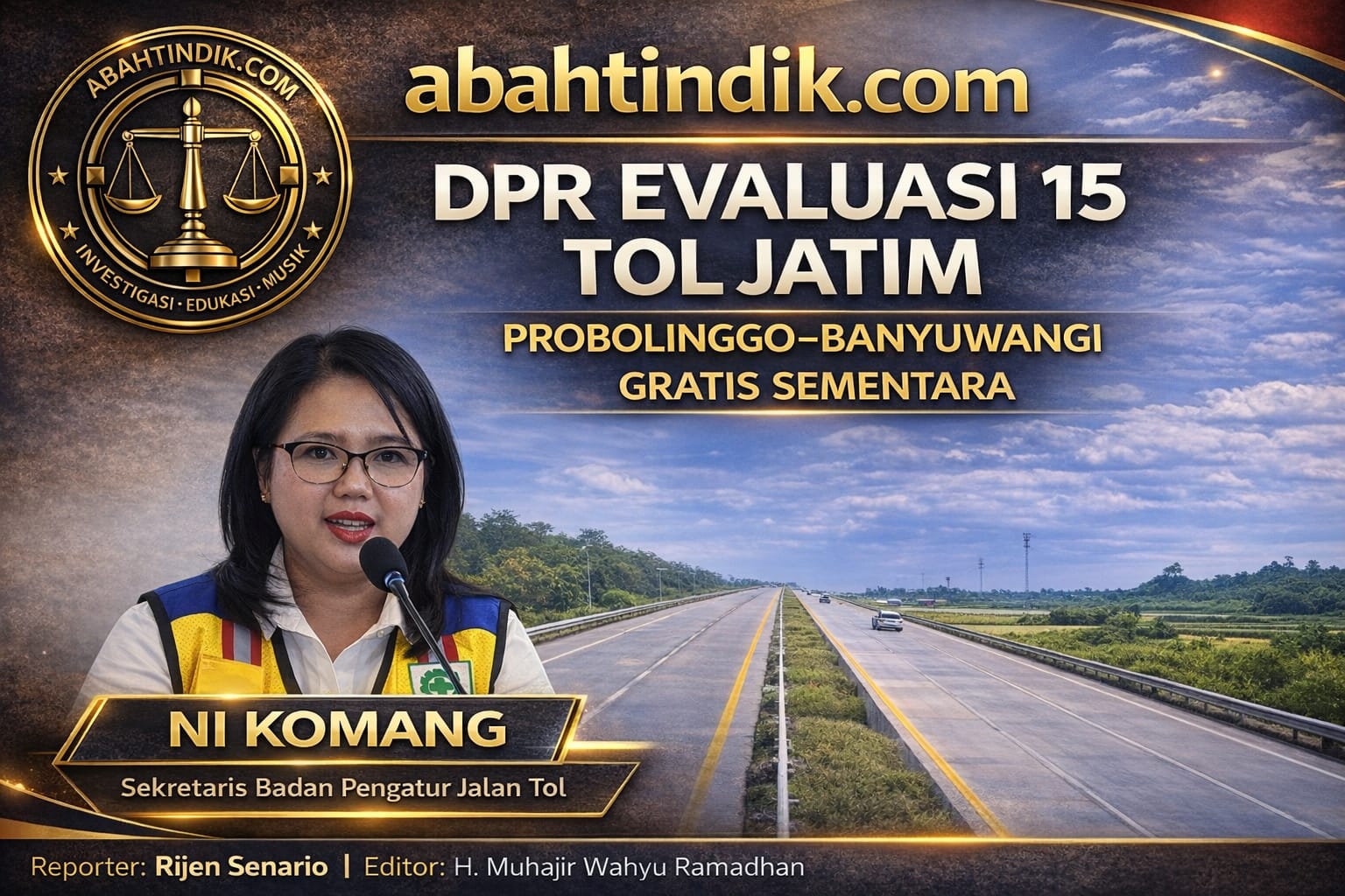 SURABAYA – abahtindik.com | Adhy Karyono memastikan 15 ruas tol aktif di Jawa Timur sepanjang 492 kilometer dalam kondisi mantap paling lambat H-10 Lebaran 2026.