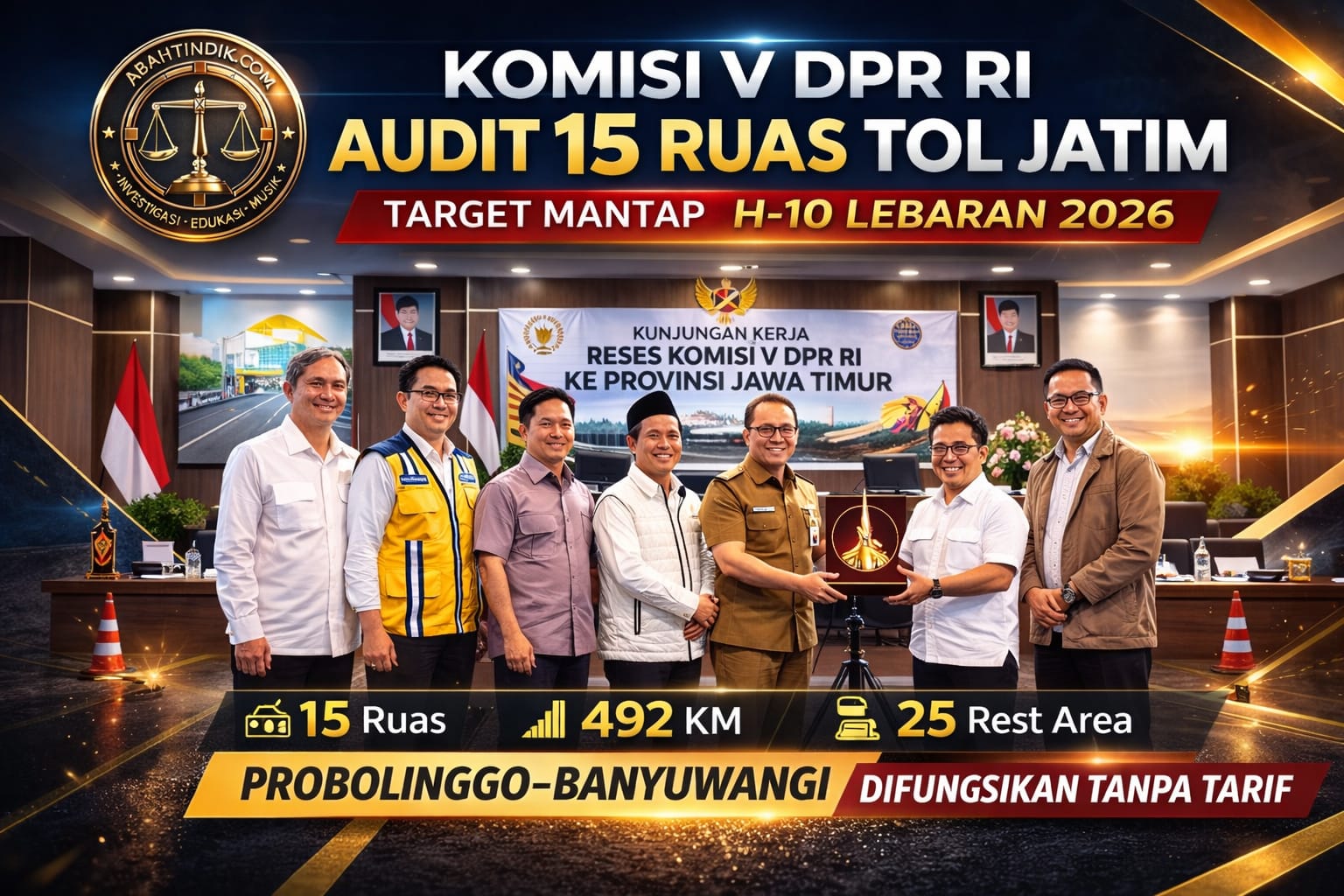 SURABAYA – abahtindik.com | Adhy Karyono memastikan 15 ruas tol aktif di Jawa Timur sepanjang 492 kilometer dalam kondisi mantap paling lambat H-10 Lebaran 2026.