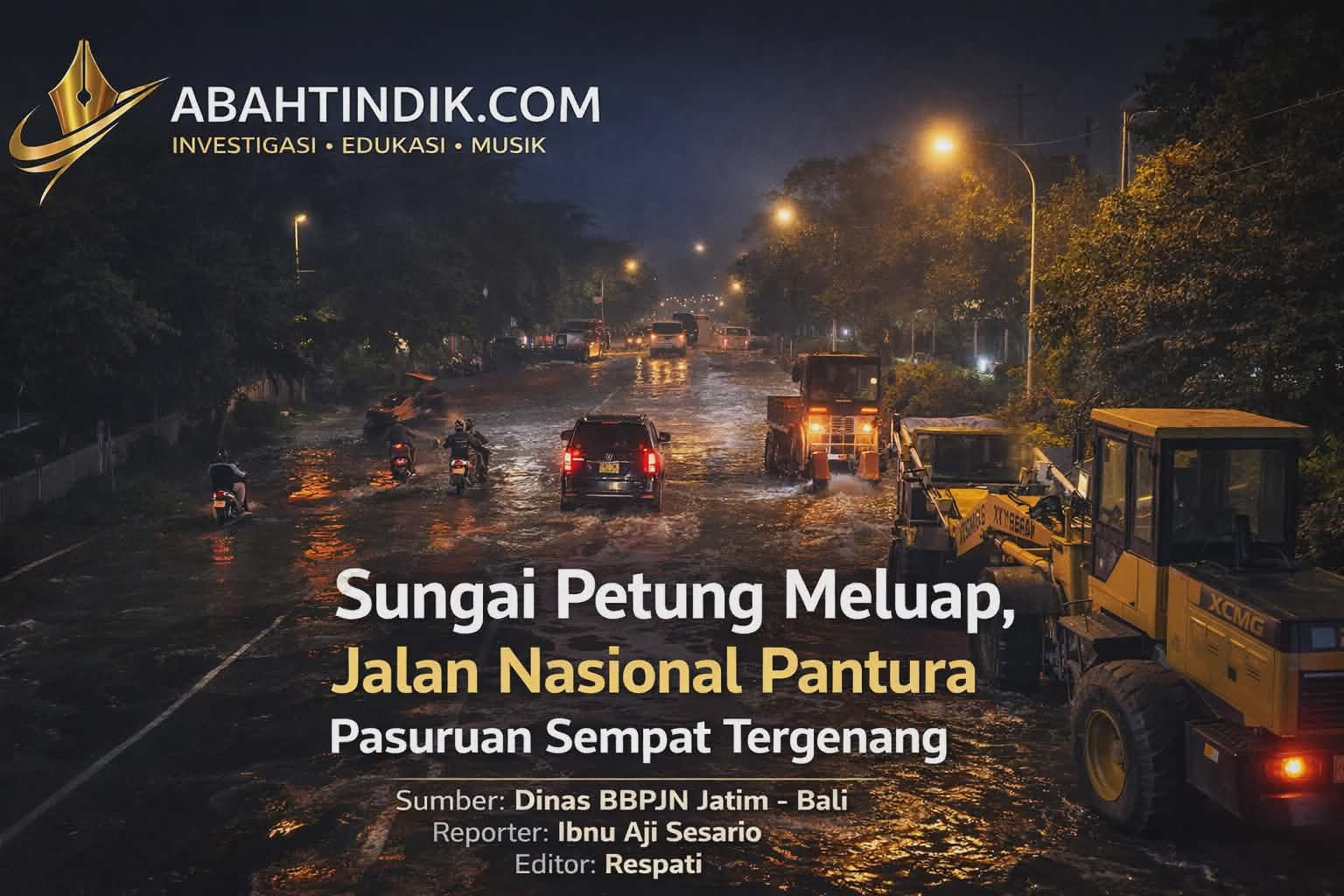 PASURUAN – abahtindik.com | Hujan deras yang mengguyur wilayah hulu Kabupaten Pasuruan menyebabkan Sungai Petung meluap dan merendam ruas Jalan Nasional Pantura, tepatnya di Jalan Ir. H. Juanda, Kota Pasuruan, Selasa (24/03/2026) malam. Peristiwa ini menjadi perhatian karena terjadi di jalur utama penghubung kawasan timur dan barat Jawa Timur yang memiliki intensitas lalu lintas tinggi, khususnya pada malam hari.