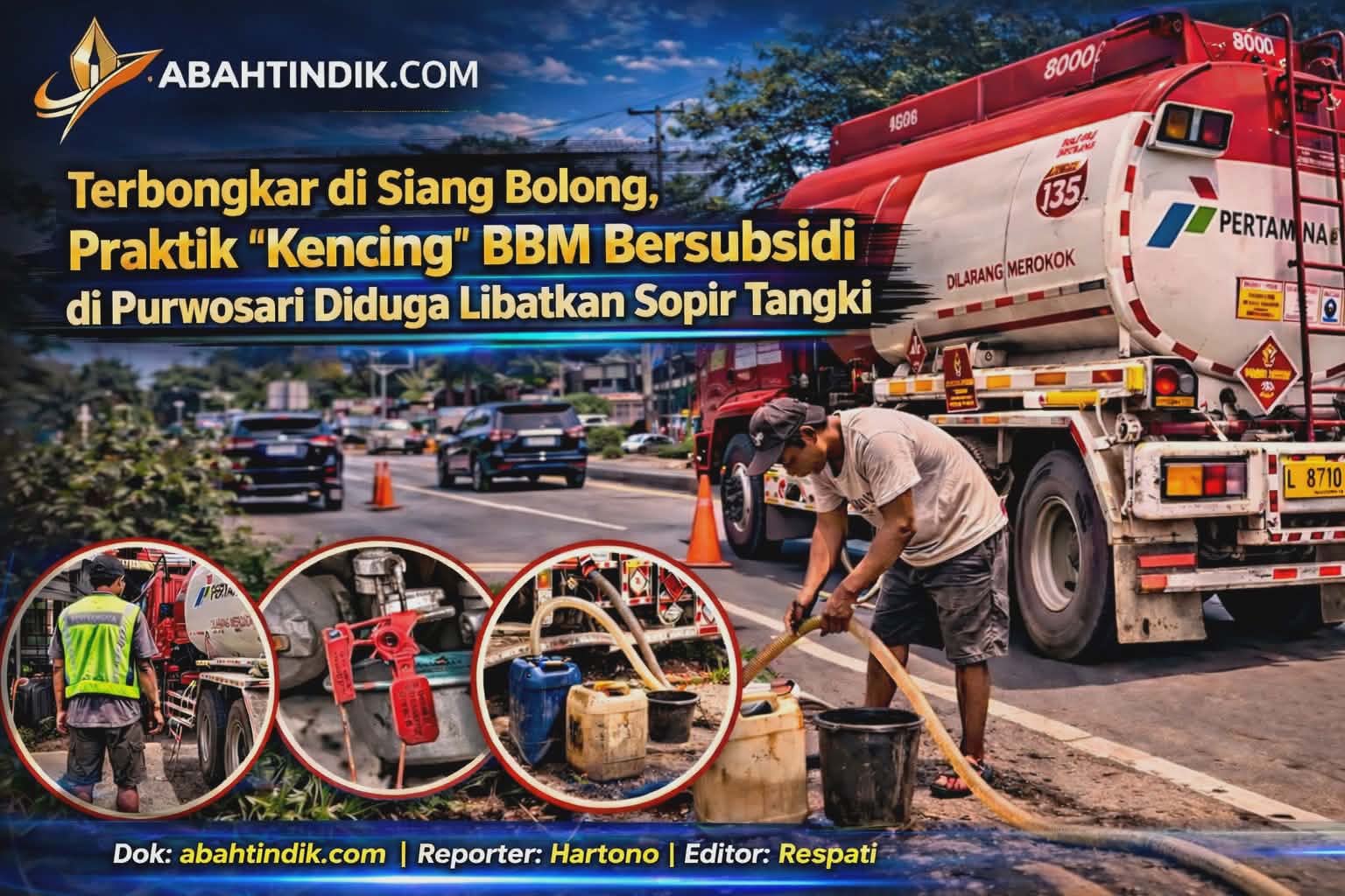 PURWOSARI, abahtindik.com — Dugaan penyalahgunaan distribusi bahan bakar minyak (BBM) bersubsidi kembali mencuat setelah seorang sopir truk tangki kedapatan melakukan praktik ilegal yang dikenal sebagai “kencing BBM” di wilayah Purwosari, Kabupaten Pasuruan, Rabu (8/4/2026).