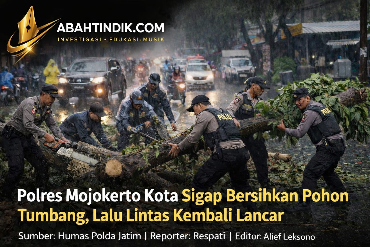 Mojokerto, abahtindik.com – Respons cepat ditunjukkan personel Satuan Samapta Polres Mojokerto Kota dalam menangani dampak cuaca ekstrem berupa pohon dan ranting tumbang di sejumlah titik wilayah Kota Mojokerto, Minggu (12/4/2026).
