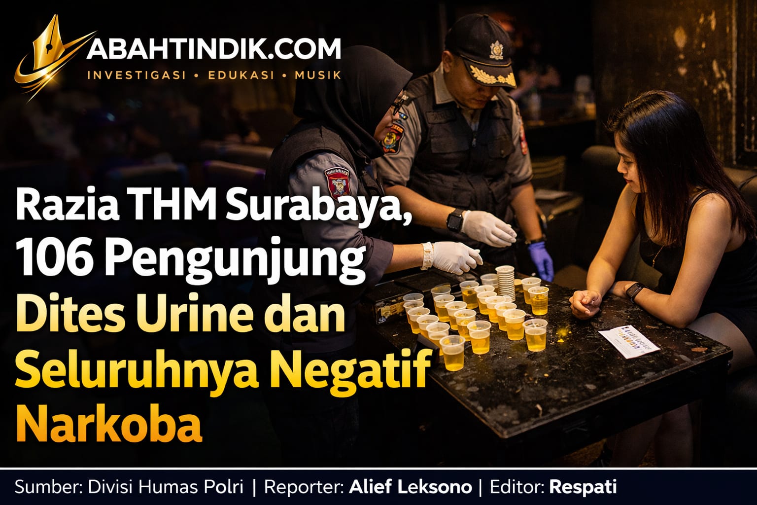 Razia THM Surabaya, 106 Pengunjung Dites Urine dan Seluruhnya Negatif Narkoba