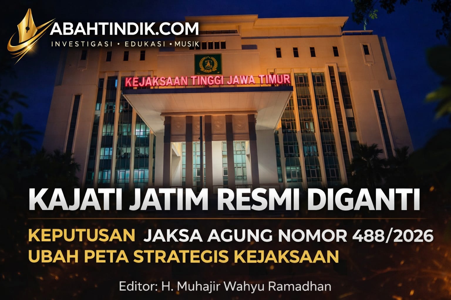 SURABAYA – analisapublik.id – Pergantian pucuk pimpinan di Kejaksaan Tinggi Jawa Timur resmi terjadi setelah Jaksa Agung Republik Indonesia menerbitkan Keputusan Nomor 488 Tahun 2026 tertanggal 13 April 2026 yang mengatur rotasi jabatan struktural di lingkungan Kejaksaan.