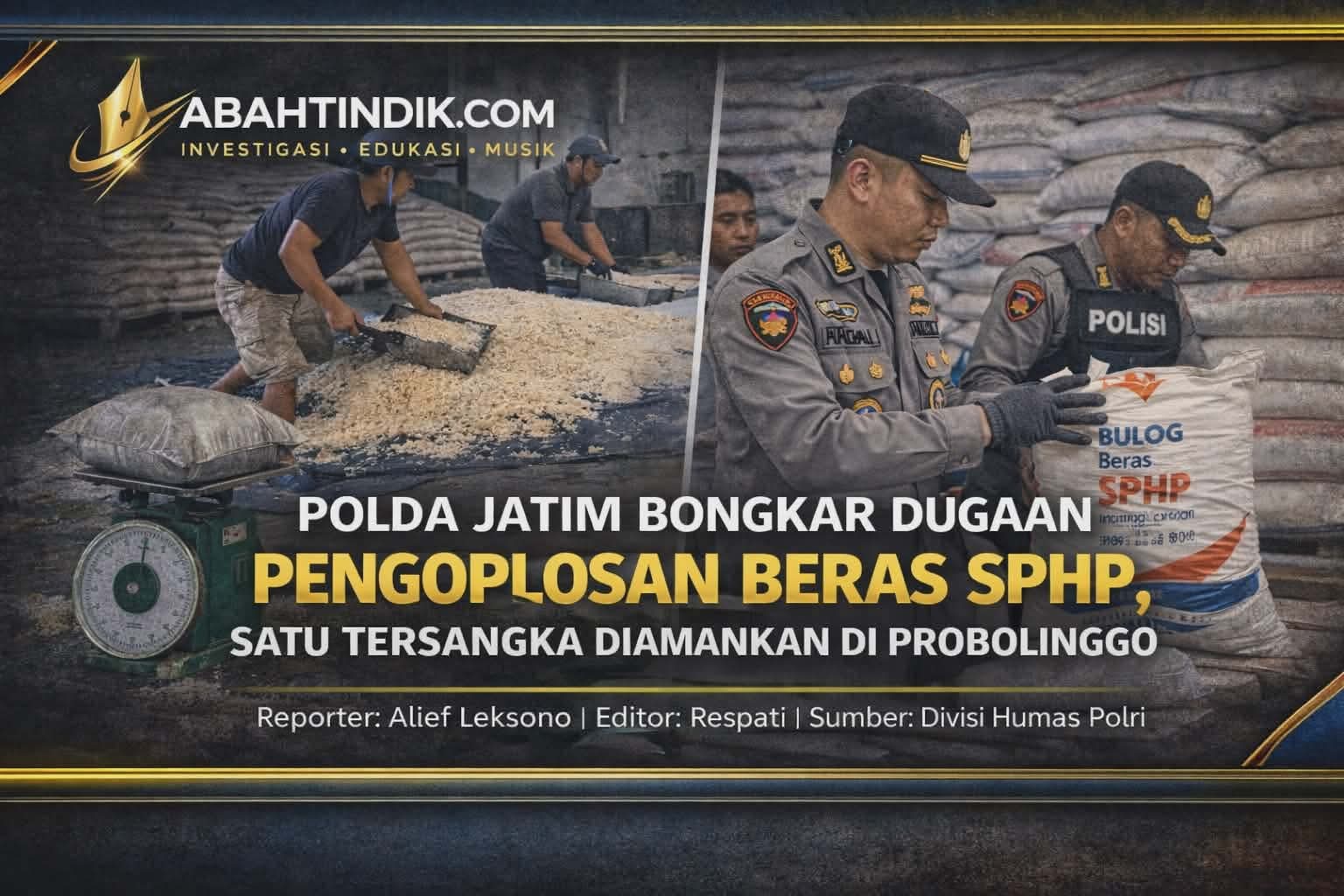 SURABAYA, abahtindik.com — Aparat Kepolisian Daerah Jawa Timur melalui Direktorat Reserse Kriminal Khusus (Ditreskrimsus) berhasil mengungkap dugaan tindak pidana di bidang pangan dan perlindungan konsumen terkait peredaran beras Stabilisasi Pasokan dan Harga Pangan (SPHP) yang tidak sesuai dengan ketentuan yang berlaku. Pengungkapan kasus ini dilakukan pada Rabu, 15 April 2026, sebagai bagian dari upaya pengawasan terhadap distribusi bahan pokok di masyarakat.