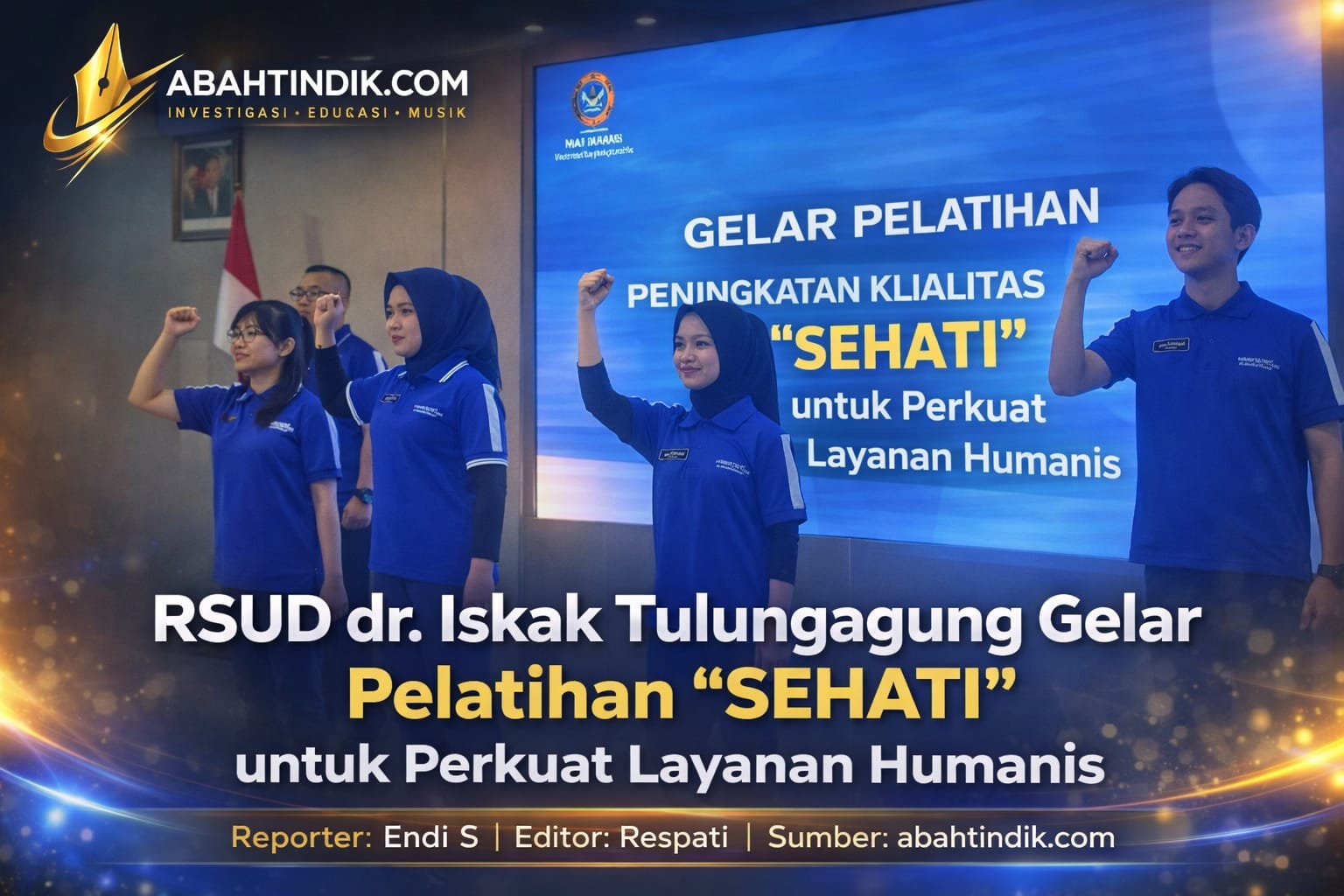 TULUNGAGUNG, abahtindik.com — Rumah Sakit Umum Daerah (RSUD) dr. Iskak Tulungagung menggelar pelatihan peningkatan kualitas layanan berbasis humanis melalui program “SEHATI” (Sehat, Empati, Humanis, Akurat, Terbaik), sebagai langkah strategis memperkuat standar pelayanan kesehatan, Rabu (15/04/2026).