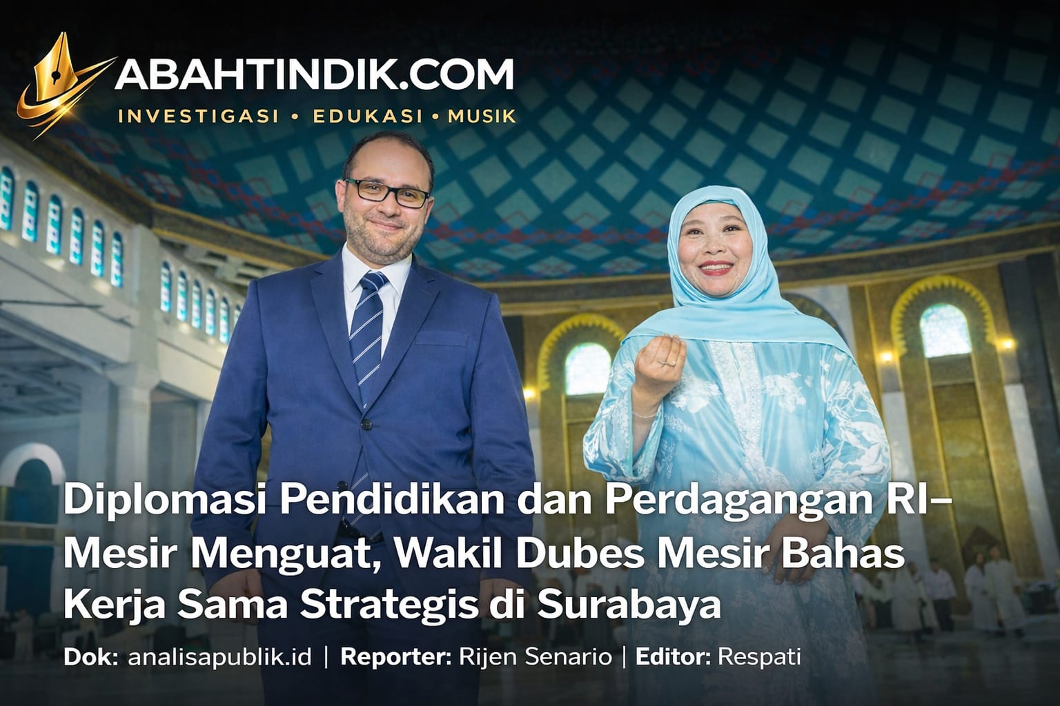 SURABAYA – abahtindik.com | Penguatan hubungan bilateral antara Indonesia dan Mesir kembali mendapatkan momentum melalui pertemuan strategis yang berlangsung di Masjid Al Akbar Surabaya, Minggu (19/4/2026). Agenda ini menjadi bagian dari upaya konkret memperluas kerja sama lintas sektor, khususnya di bidang pendidikan dan perdagangan yang saat ini tengah dalam tahap pengembangan lanjutan.