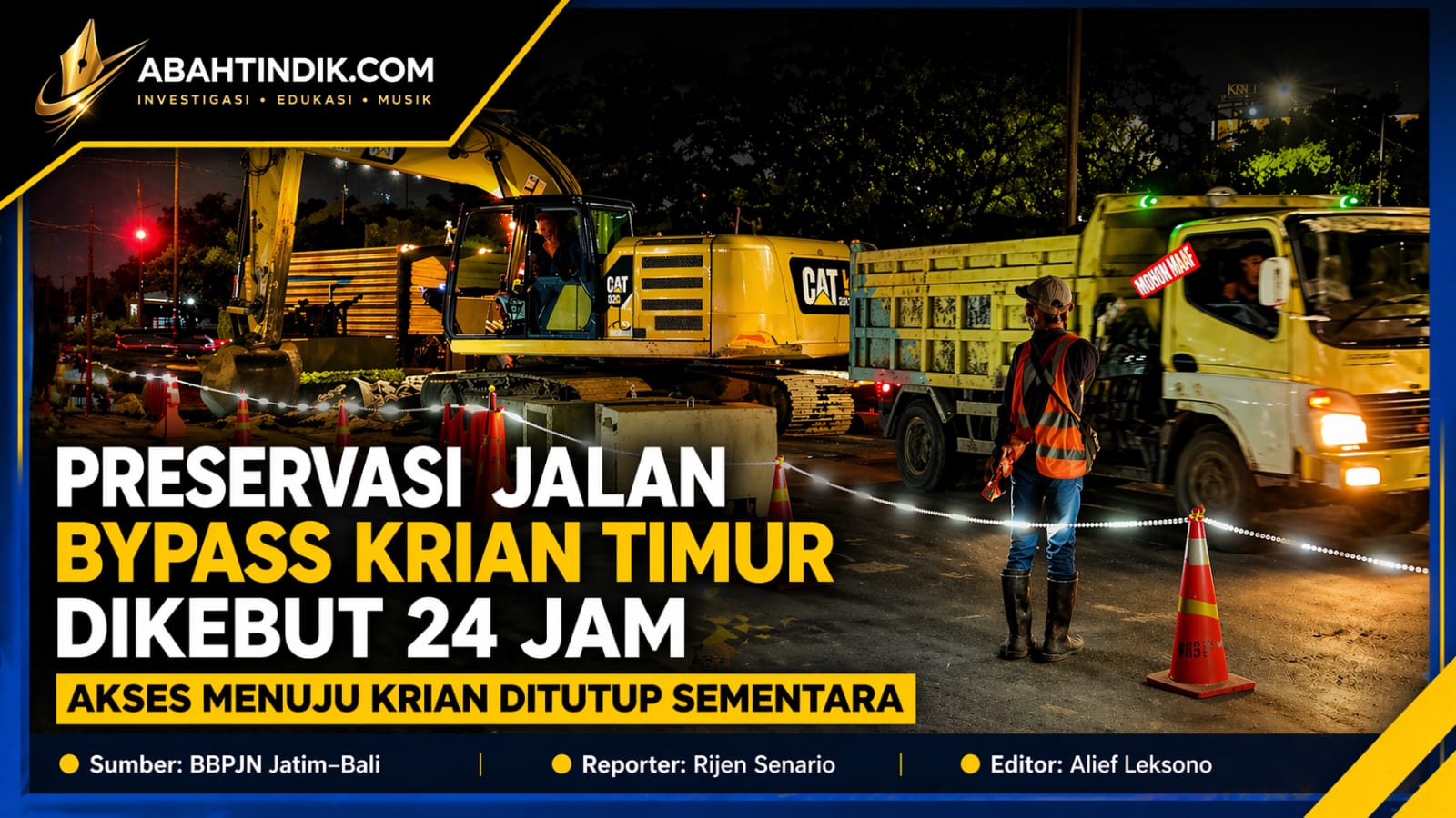 SIDOARJO, abahtindik.com – Pemerintah melalui Balai Besar Pelaksanaan Jalan Nasional (BBPJN) Jawa Timur–Bali terus mempercepat peningkatan kualitas infrastruktur jalan strategis nasional. Salah satu yang saat ini tengah berjalan adalah pekerjaan preservasi jalan dan jembatan di ruas Lingkar Bypass Krian Timur – Dr. WS. Husodo, Kabupaten Sidoarjo.