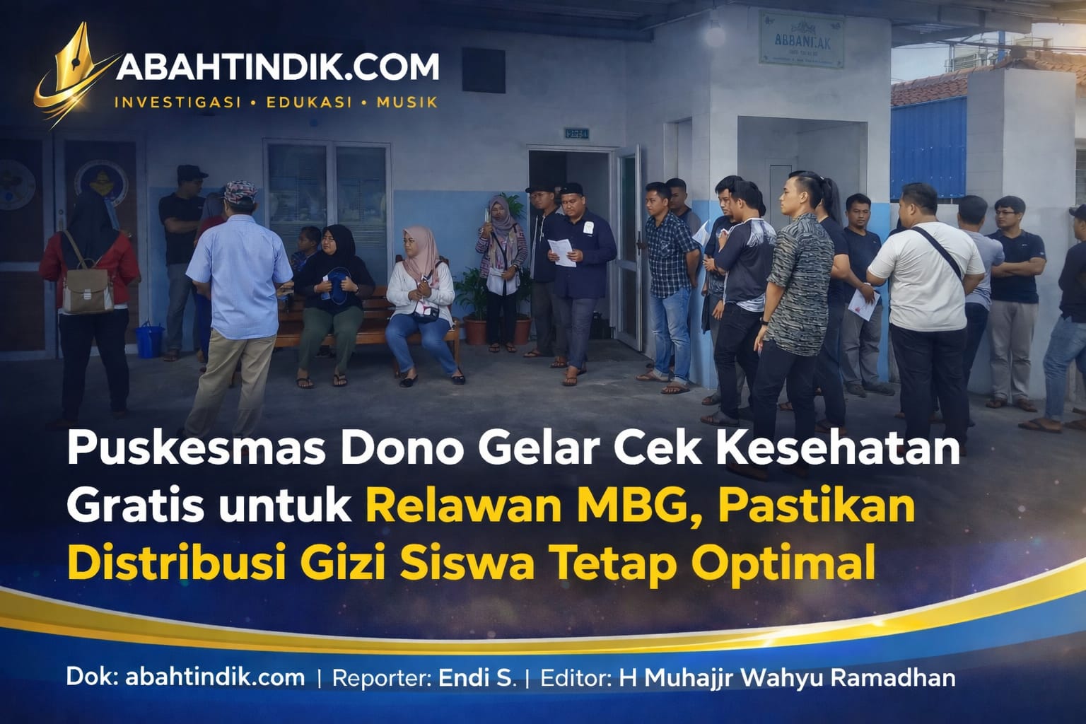 TULUNGAGUNG – abahtindik.com | Puskesmas Dono, Kecamatan Sendang, Kabupaten Tulungagung, menggelar program Cek Kesehatan Gratis (CKG) bagi relawan Program Makan Bergizi Gratis (MBG) di Satuan Pelayanan Pemenuhan Gizi (SPPG) Dono, Selasa (21/04/2026). Kegiatan ini diikuti sebanyak 51 relawan yang berperan langsung dalam distribusi makanan bergizi kepada siswa-siswi.