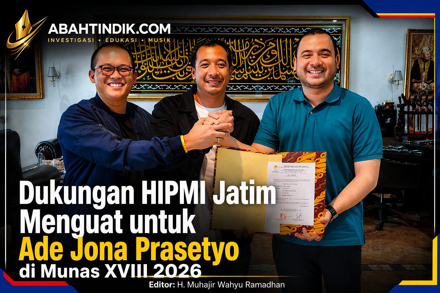 SURABAYA, abahtindik.com — Dukungan terhadap Ade Jona Prasetyo sebagai calon Ketua Umum Himpunan Pengusaha Muda Indonesia (HIPMI) periode 2026–2029 terus menguat menjelang pelaksanaan Musyawarah Nasional (Munas) XVIII HIPMI yang dijadwalkan berlangsung pada Juni 2026.