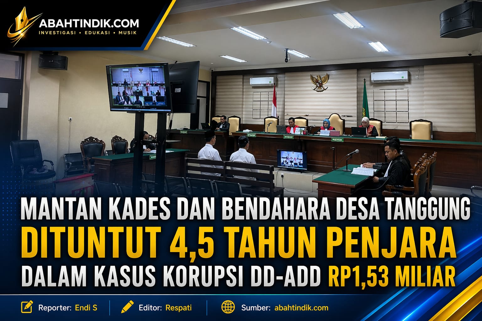 Mantan Kades dan Bendahara Desa Tanggung Dituntut 4,5 Tahun Penjara dalam Kasus Korupsi DD-ADD Rp1,53 Miliar