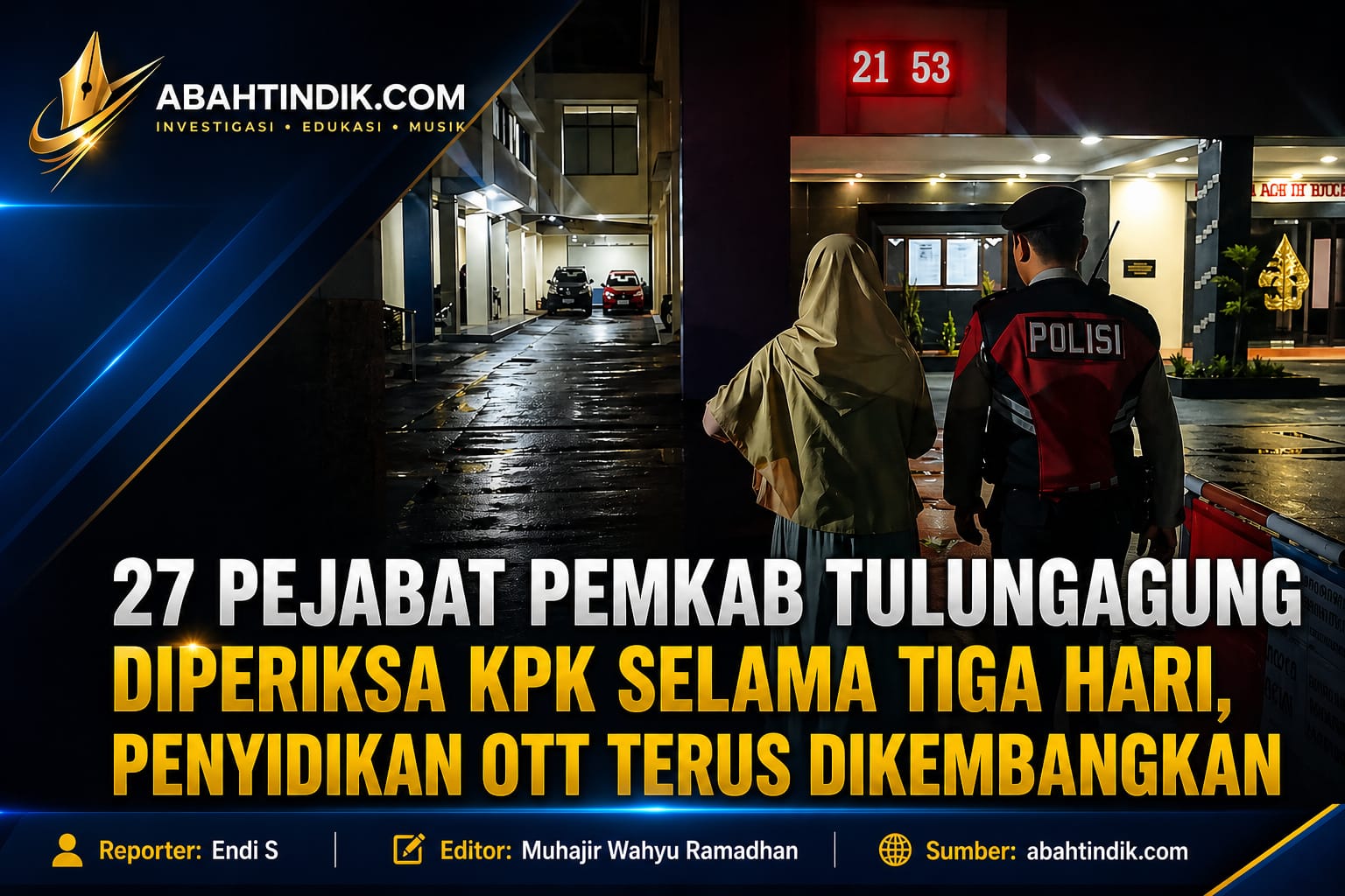TULUNGAGUNG, abahtindik.com – Komisi Pemberantasan Korupsi (KPK) terus mendalami kasus dugaan korupsi di lingkungan Pemerintah Kabupaten Tulungagung dengan memeriksa puluhan pejabat lintas organisasi perangkat daerah (OPD). Pemeriksaan ini merupakan tindak lanjut dari operasi tangkap tangan (OTT) yang menyeret Bupati nonaktif Gatut Sunu Wibowo.